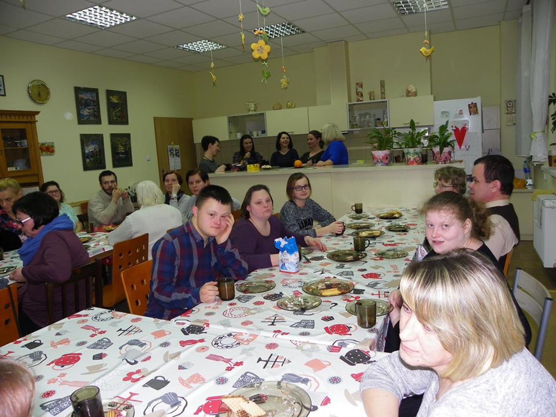 Kolejne, karnawałowe spotkanie grupy wsparcia działającej przy Stowarzyszeniu "Barka" pn. Przystanek Nadzieja odbyło się w ostatni piątek lutego. Tym razem skorzystaliśmy z gościnności podopiecznych i pracowników Środowiskowego Domu Samopomocy w Sokółce. 35 osób świetnie bawiło się biorąc udział w wielu grach i zabawach integracyjnych oraz konkursach zręcznościowych. Był czas na wspólne zabawy przy muzyce, a także rozmowy przy herbacie i pysznych ciastkach.